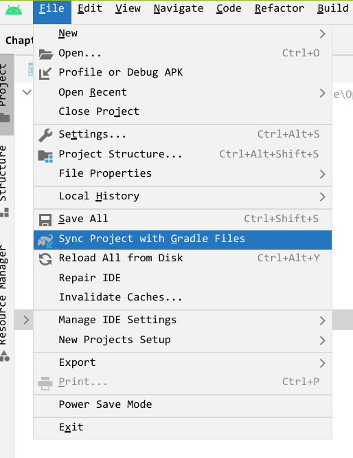 Now sync the project by selecting “File > Sync Project with Gradle” on the menu.